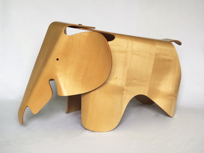 Masse Anfang der Vierziger Jahre entwickelten Charles und Ray Eames die Technik der dreidimensionalen Sperrholzverformung und setzten diese wegweisende Innovation zur Herstellung unterschiedlicher Möbel und Skulpturen ein. Unter den frühen Entwürfen aus Plywood ist der Elephant der fertigungstechnisch anspruchsvollste, verlangt er mit seinen engen und gegenläufigen Rundungen doch eine perfekte Beherrschung der Plywood-Technologie. Der fertigungstechnisch aufwendige Entwurf ging nie in Produktion. Zwei Prototypen waren 1945/46 im Museum of Modern Art in New York zu sehen. Heute ist nur noch ein einziger Plywood Elephant im Besitz der Eames Familie bekannt. Im Rahmen einer streng limitierten Edition macht Vitra den legendären Eames Plywood Elephant nach Vorbild des Prototypen 2007 erstmals seriell verfügbar. |