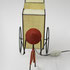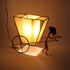 Sehr zeittypische, witzige und seltene Tischlampe aus den 50er Jahren in Form eines Chinesen der einen Wagen zieht. Der Wagen ist von innen beleuchtet und gibt wunderschönes warmes Licht. Die originelle Lampe besteht aus dickem, schwarz lackiertem Draht mit einem Kunstostoff Geflecht als „Lampenschirm“. Die Tischlampe befindet sich in sehr gutem Originalzustand mit leichter Patina. Der Lampenschirm hat keinerlei Beschädigungen und ist nicht wie üblich angesengt. Ich empfehle daher die Lampe nur mit LED Leuchtmittel zu betreiben da diese kaum Wärme entwickeln und sie somit noch lange Freude an diesem schönen Stück haben können.
