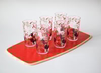 Serviertablett mit sieben (6 + 1) Gläsern "Pudel"